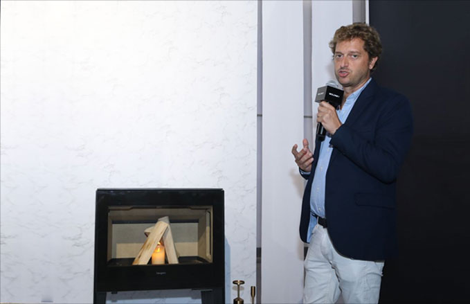 隨著主持人的開場介紹,活動正式展開。遠道而來的意大利AK47 聯合創始人兼銷售總監芭芭拉女士、西班牙Hergom市場總監German先生,意大利PALLZZETTI市場總監Paolozulian先生向現場來賓們介紹了他們引以為豪的壁爐產品。